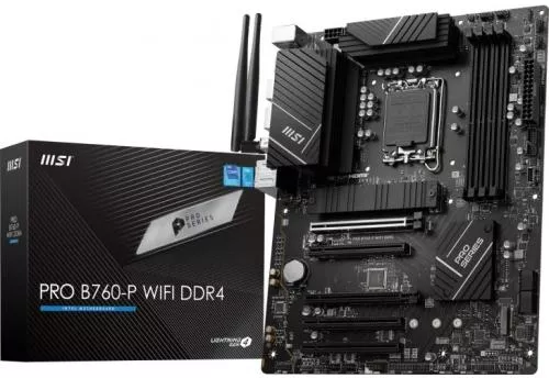 MSI PRO B760-P WIFI DDR4, ATX, Socket 1700, Dual Channel DDR4 5333(OC)MHz, 2x PCIe x16 slots, 2x M.2 slots, 1x HDMI, 1x DP, 1x USB 3.2 Gen 2x2 Type-C, 3x USB 3.2 Gen 2, 4x USB 2.0, 7.1 HD Audio, 2.5Gbps LAN, WI-FI 6E, BT, 3Y