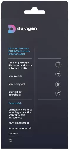 Ai un stil de viata dinamic, plin de provocari? ATUNCI AI NEVOIE DE FOLIA DE PROTECTIE PENTRU TABLETA DURAGON ANTISOC PREMIUM MATA! Asigura protectia display-ului device-ul tau impotriva socurilor mecanice (mici si medii), dar si impotriva depunerii prafului si a murdaririi. Designul fin si decupajele precise permit aplicarea foliei Duragon pe orice tip de display. Folia este apreciata datorita proprietatilor unice Anti-Amprenta si Anti- Reflex. Tableta dvs. nu isi va modifica forma, culoarea sau greutatea dar va capata un aspect mat . Puteti folosi orice sistem de docare si orice accesoriu. Fiind foarte flexibila si puternic adeziva, se va mula pe orice suprafata curbata. Sunt fabricate dintr-un material foarte flexibil si sunt rezistente la deformari fizice, prelungind foarte mult viata acestora (nu crapa si nu se dezlipesc precum cele de sticla) . Foliile au proprietatea self-healing. Materialul Premium Mata nu permite zgarierea foliei, protejand foarte bine in acelasi timp tableta la zgarieturi si impact direct. Foliile sunt gata decupate si vin cu kit de montare. Pachetul contine : 1 x folie fata, 1 x folie spate, 1 x servetel microfibra, 1 x mini spray gel, 1 x mini racleta, 1 x instructiuni montaj
